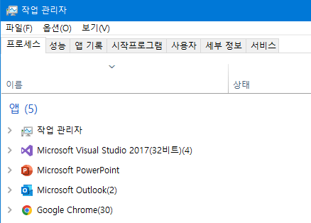 - Windows 작업관리창에 표시되어 있는 Program들 (실행 중)