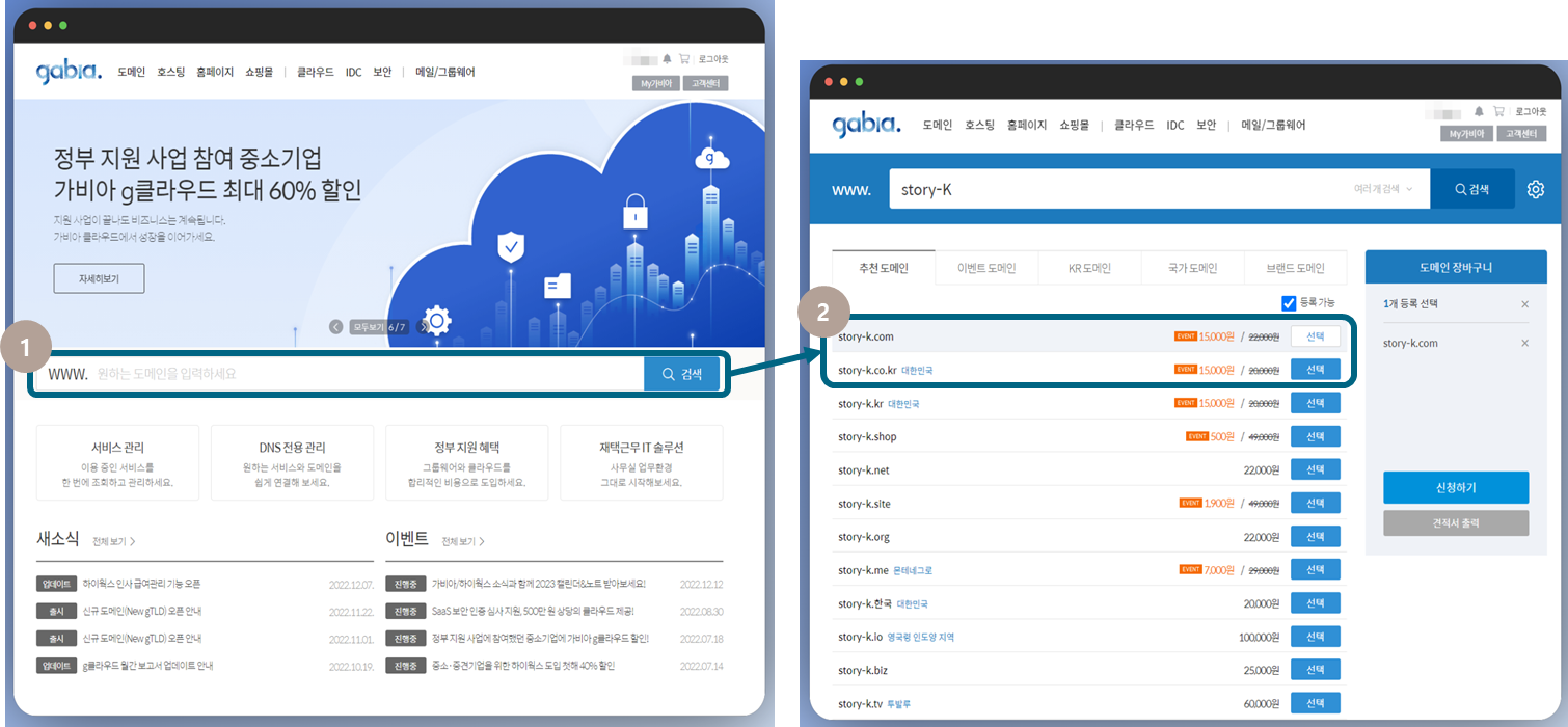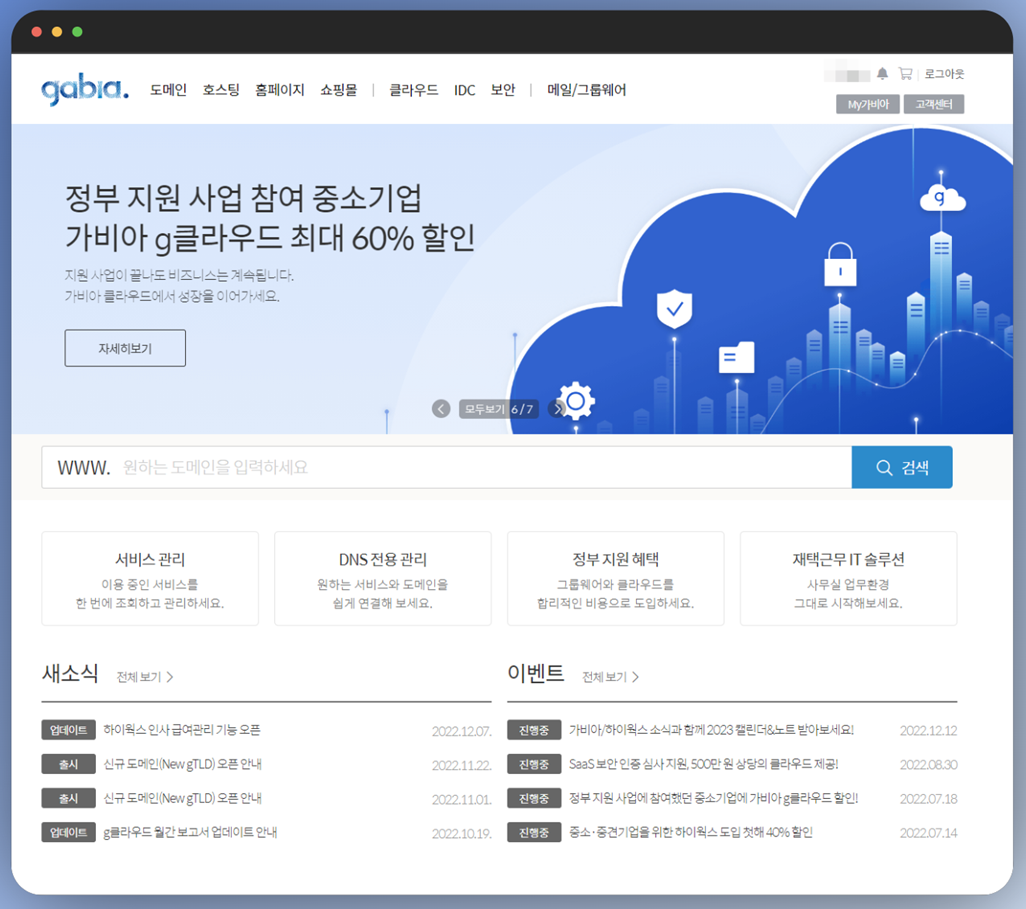 도메인을 구입할 수 있는 다른 회사들도 있지만 가장 많이 사용하는 가비아를 이용할게요.