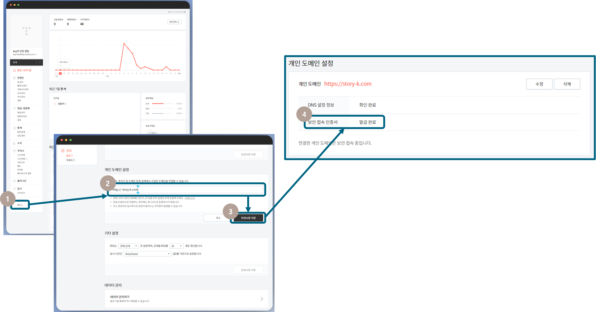 도메인을 구입해서 블로그 주소 변경을 하면 "하위 도메인"을 이용해서 보다 수월하게 할 수 있습니다. 😀