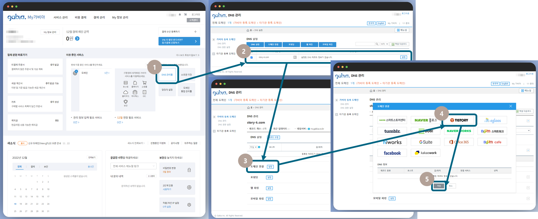 선택해주고 "저장"버튼을 누르면 가비아에서의 설정은 끝입니다. 👍